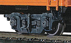 (05/14/2004) From John Riddell: Life Like Canada has a new PROTO 2000 freight car truck on the market. It is a 1937 cast-steel sideframe truck with SIMPLEX bolster. It has metal ribbed-back wheels. The bolster ends have the raised letters 'SIMPLEX' - the first such truck. The part number is 212560. The package is labeled '1934 AAR Trucks with Simplex Bolsters'. Actually it is 1937 not 1934. These new Proto2000 trucks will be available on the future Life Like Fowler boxcars.